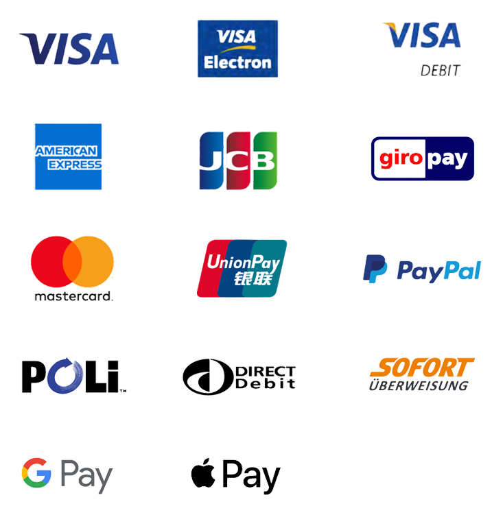 Start accepting contactless customer payments via multiple payment methods, such as Credit Card, Sofort, Paypal, Direct Debit (EFT) and many more.